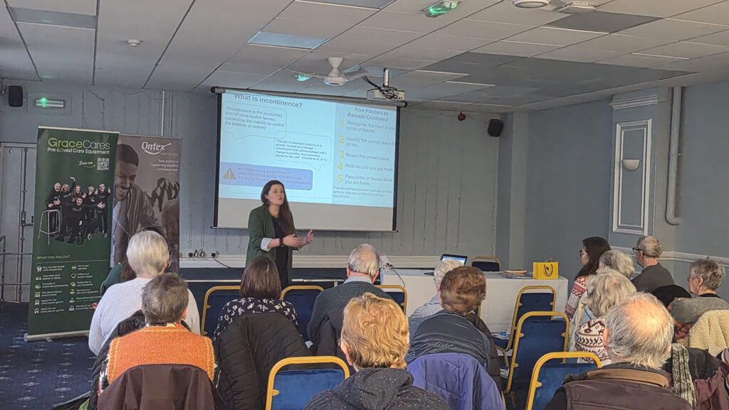 The focus of the session was incontinence care, with practical advice delivered by an experienced incontinence nurse, Paulina Kurek alongside Michelle Garvey from Ontex. Attendees also received additional wellbeing support from Nicola Forsyth who shared guidance on managing stress and overwhelm through life coaching and effective breathwork techniques to help carers regulate and reset during challenging moments.