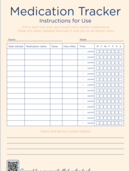 Easily stay on top of medications with this simple tool. Track doses, times, and notes to ensure safe and consistent care.